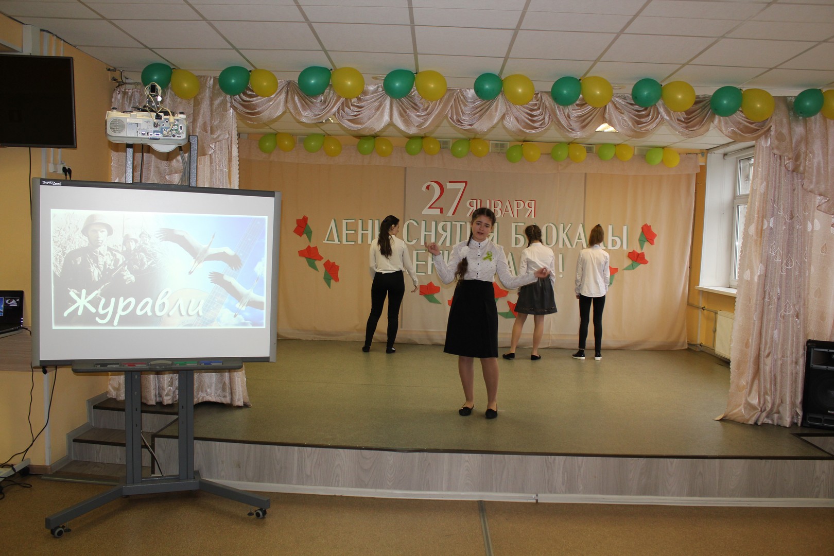 В понедельник было проведено мероприятие посвященное Дню снятия блокады Ленинграда. Обучающиеся старших классов встретились с ветеранами - детьми блокадниками, которые рассказали о тяжелых днях.  Послушали рассказ о блокадном хлебе. Учителями был приготовлен хлеб по блокадному рецепту и чай из коры дуба. Обучающимися были исполнены патриотические песни.