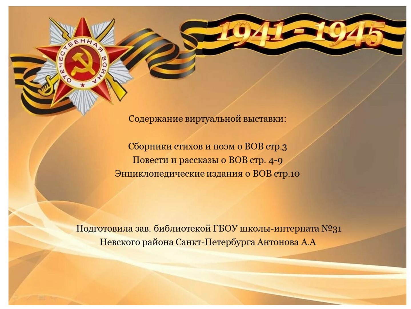 Виртуальная выставка книг из фонда библиотеки ГБОУ школы-интерната №31 Невского района Санкт-Петербурга, посвящённая 75-летию Великой Победы.