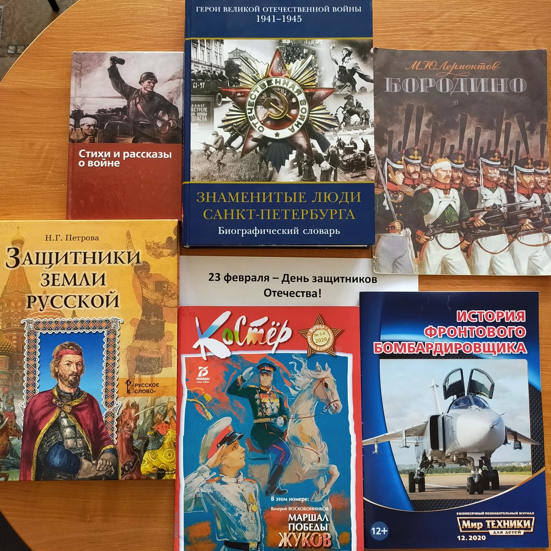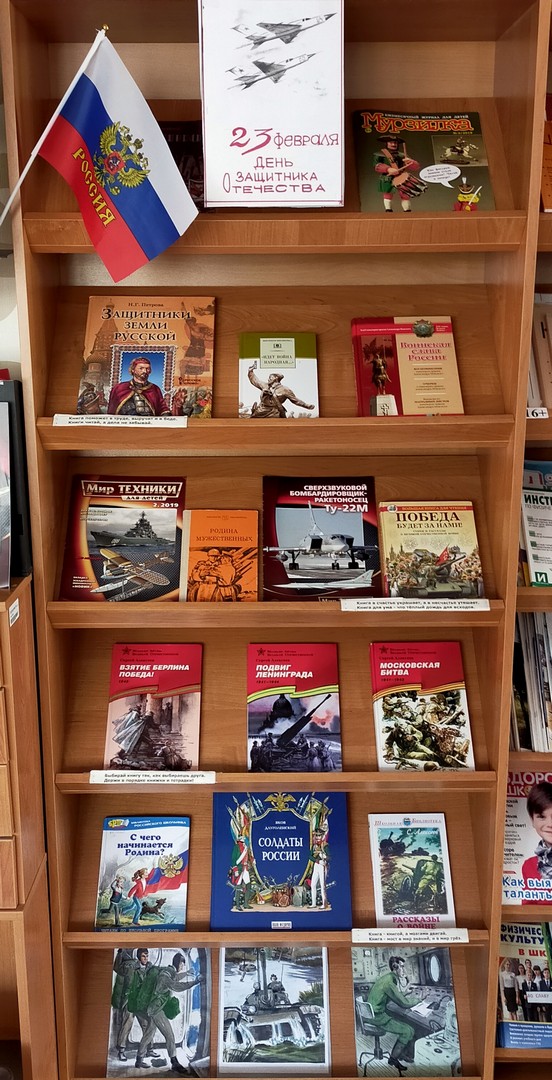 Из библиотечного обзора обучающиеся узнали, что во все века героизм, мужество воинов России, мощь и слава русского оружия были неотъемлемой частью величия Российского государства. История Дня защитника Отечества – неотделимая часть истории нашей страны. Более 80 лет 23 февраля в России отмечается как праздник. В этот день мы отдаем дань уважения и благодарности тем, кто мужественно защищал родную землю от захватчиков, а также тем, кто в мирное время несет нелегкую и ответственную службу. Зав. библиотекой Антонова А.А.