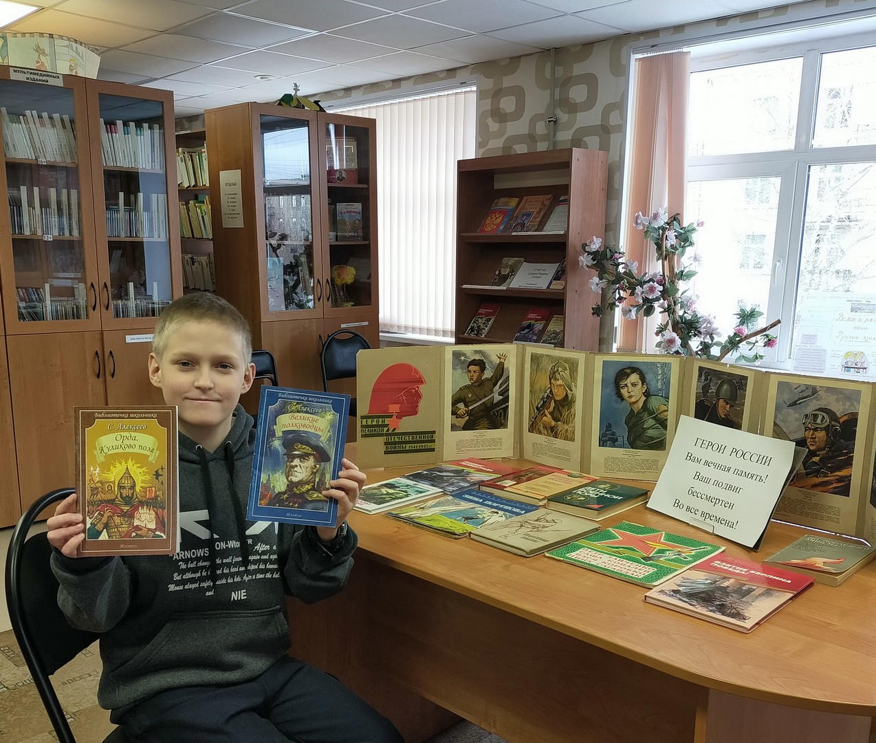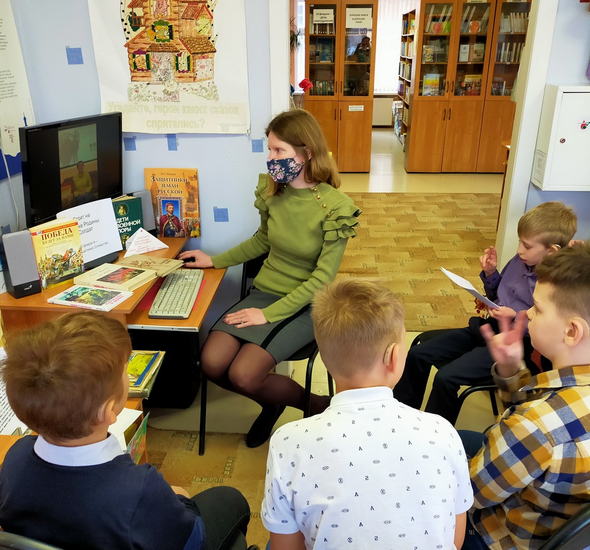 Занятие включало в себя: беседу о героизме воинов России, мощи и славе русского оружия на книжной выставке «Сильная Армия – сильная Россия»; онлайн-обзор литературных произведений от детской библиотеки № 8 Невского района Санкт-Петербурга «Герои Великой Отечественной Войны»; интерактивную игру-викторину «Военные профессии». Зав. библиотекой Антонова А.А.
