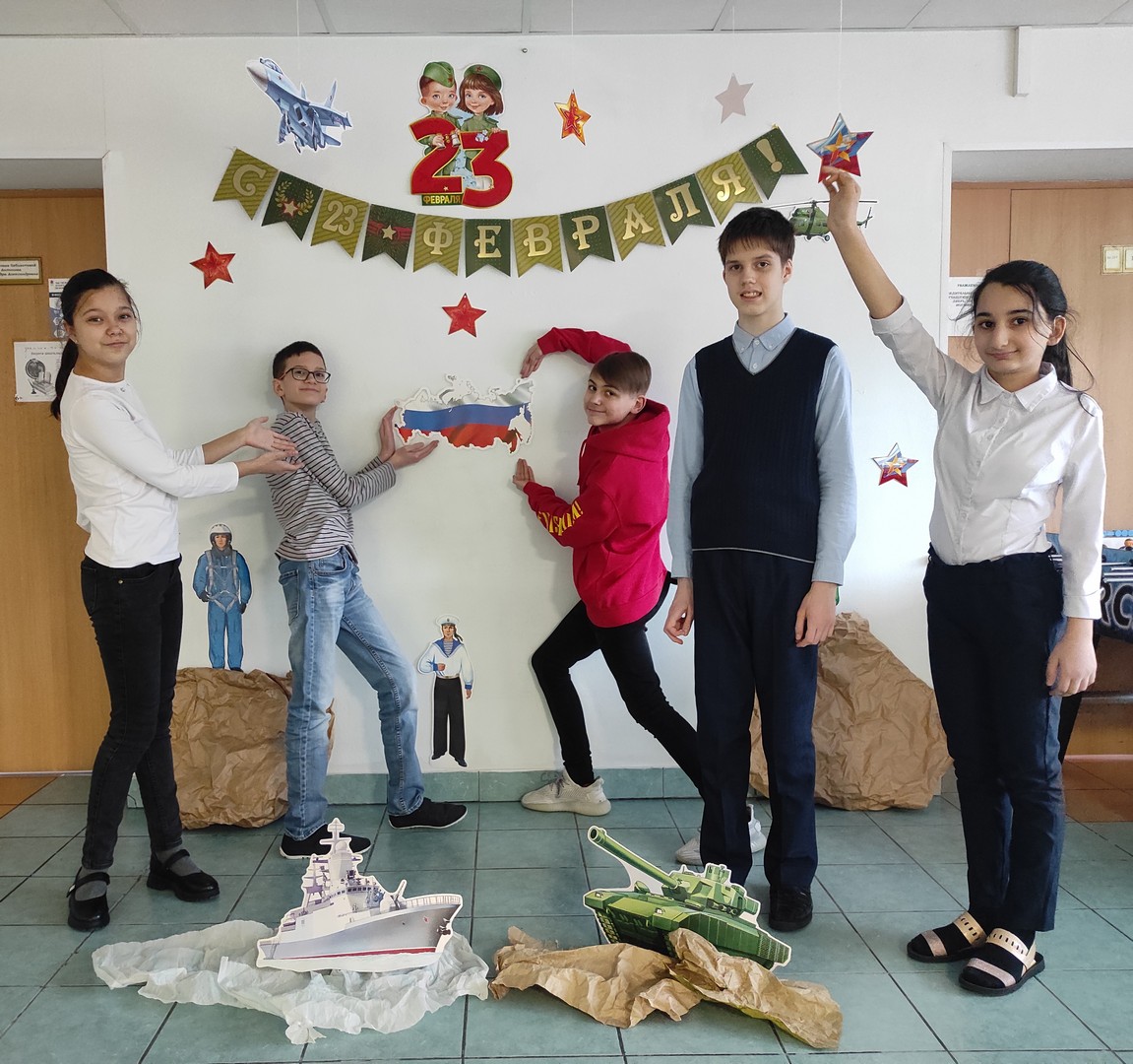 В рамках празднования Дня защитника Отечества а школе проходил флешмоб «Равняйся. Смирно», были подготовлены праздничные поздравительные плакаты, организованы тематические фотозоны на этажах. Также был подготовлен онлайн концерт.