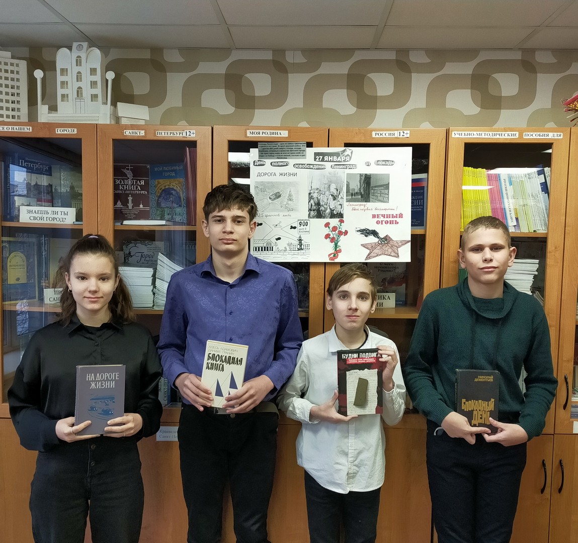 24 января для учащихся состоялось библиотечное мероприятие «Подвиг Ленинграда», проведенное в рамках гражданско-патриотического воспитания ко Дню полного освобождения Ленинграда от фашистской блокады.