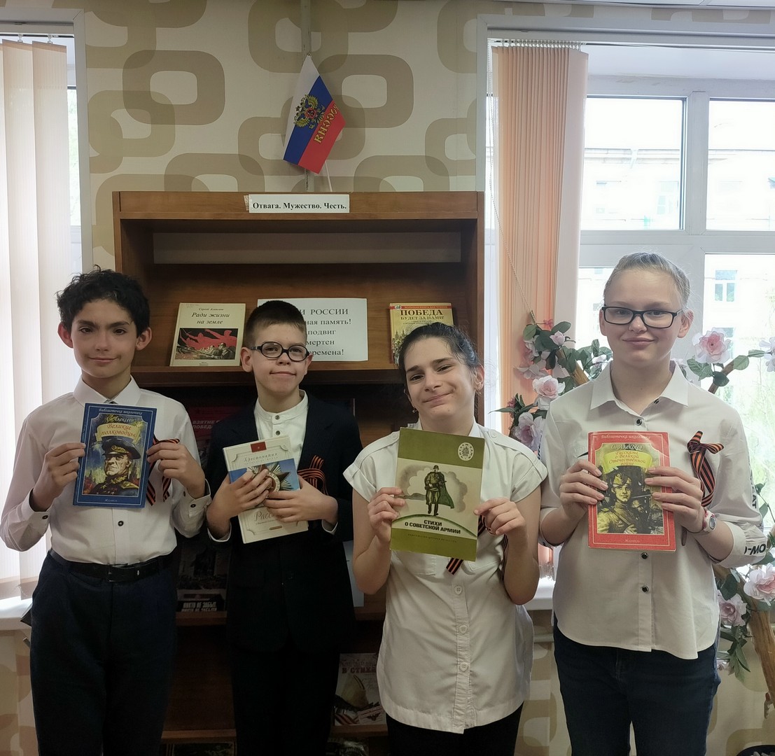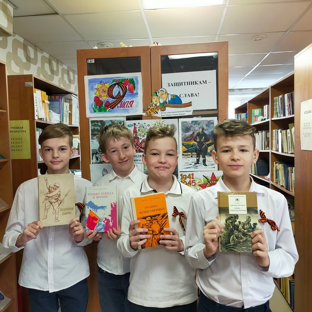 В школьной библиотеке для учащихся ко Дню Победы был проведен обзор «Великий подвиг великого народа».