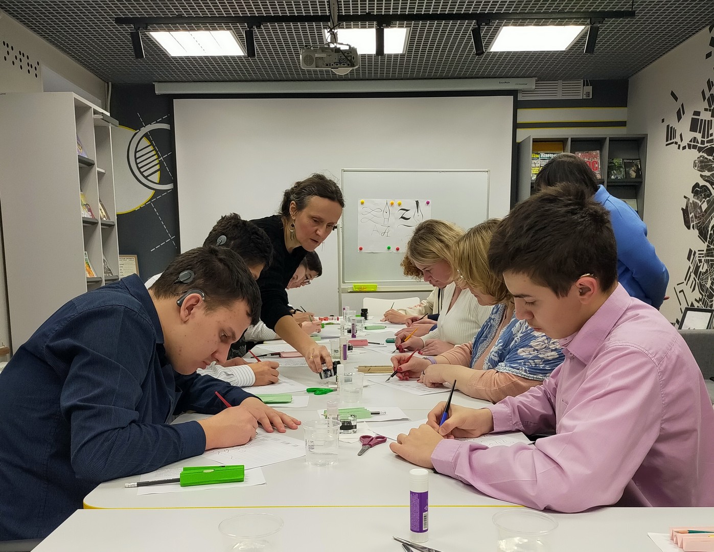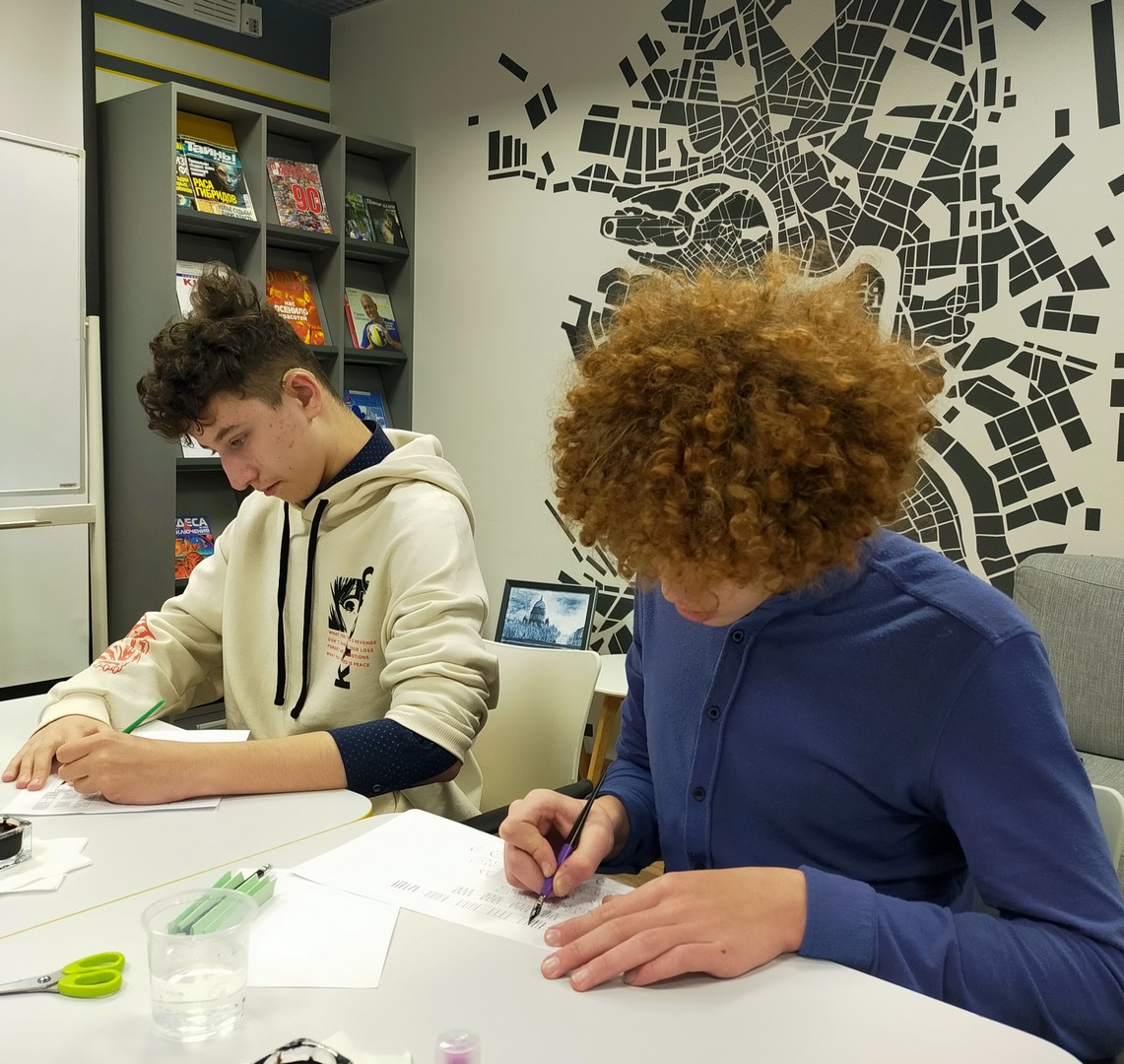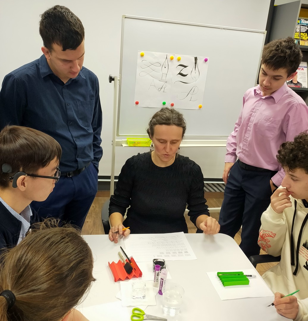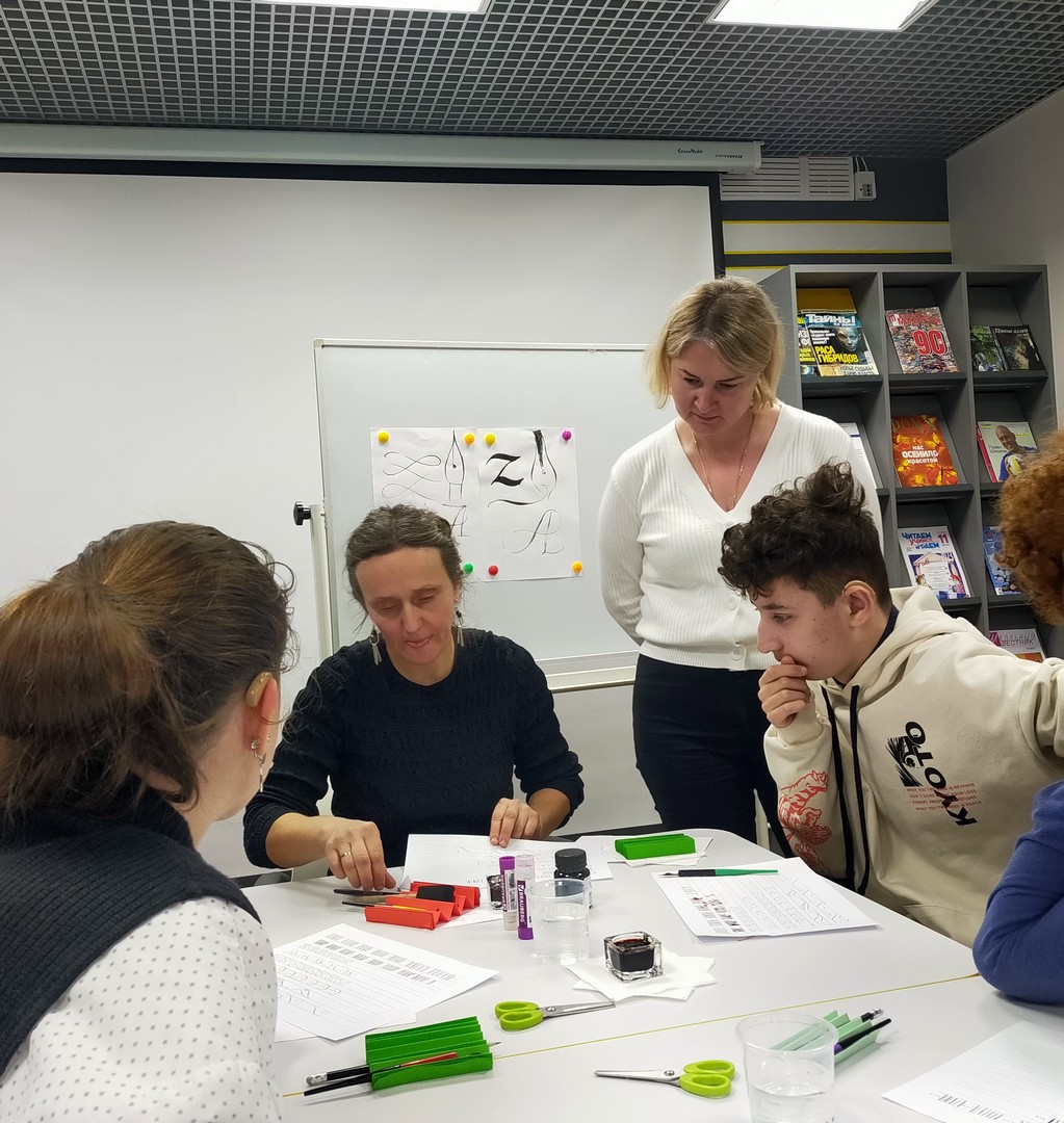 28 ноября читатели школьной библиотеки – учащиеся 7 «б» и 8 «а» классов - побывали на познавательном, интересном, обучающем мастер-классе по каллиграфии «Русская вязь» в «ГСЦ библиотеке для слепых и слабовидящих».