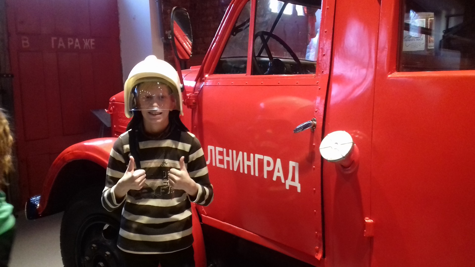 Мы увидели первых пожарных Петербурга, пожарные насосы, конную пожарную команду, красивую форму пожарных. Узнали, почему пожарные были обязательно с бородой и многое другое. Попробовали одеть современную пожарную одежду и посидеть на настоящей пожарной машине