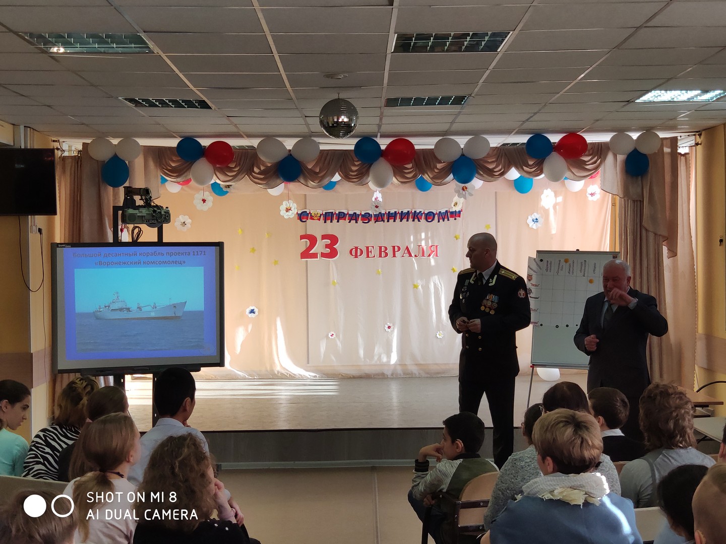 Он рассказал о развитии и оснащении современного военно- морского флота, показал в презентации корабли, на которых ходил в дальние учебные походы, виды подводных и надводных кораблей и их грозное боевое оружие. В конце встречи Эдуард Николаевич  пожелал всем ребятам успехов в учебе, быть добрыми и помогать тем, кому нужна защита и помощь. Встреча прошла для учащихся интересно и познавательно.