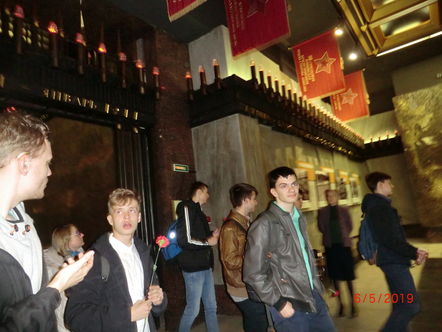 Далее экскурсия продолжалась под землей в Памятном зале. Особое внимание было обращено на большие мозаики «Блокада» и «Победа», на книги Памяти с металлическими ежедневными страницами с 1941 по 1944 годы. В конце экскурсии был показан документальный фильм о жизни ленинградцев в годы блокады.