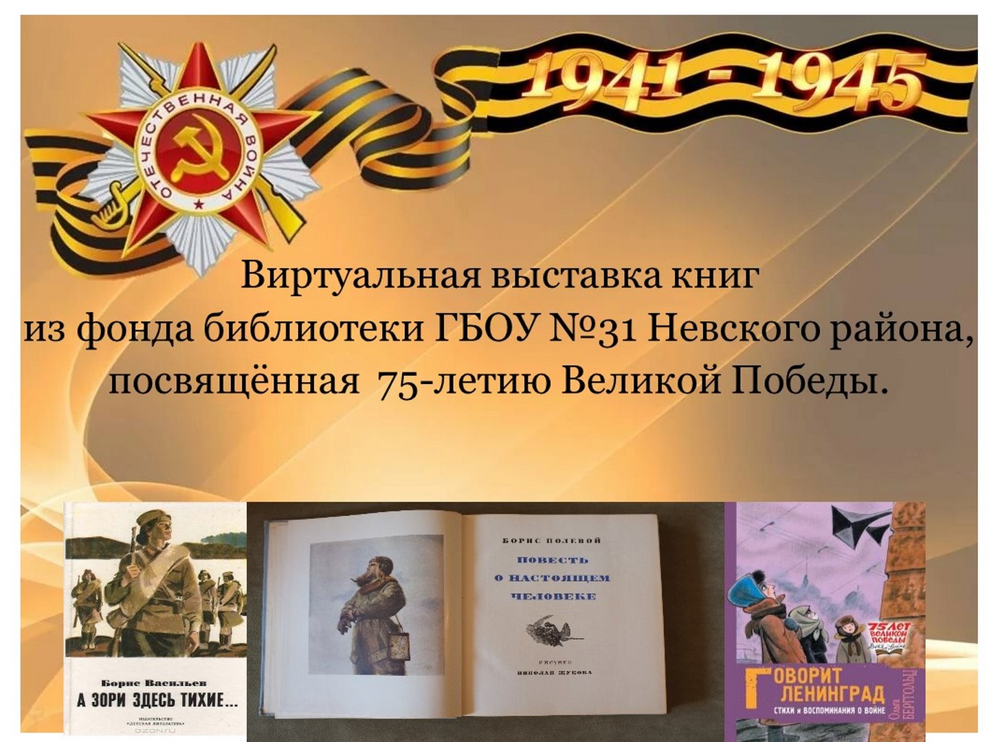 Виртуальная выставка книг из фонда библиотеки ГБОУ школы-интерната №31 Невского района Санкт-Петербурга, посвящённая 75-летию Великой Победы.