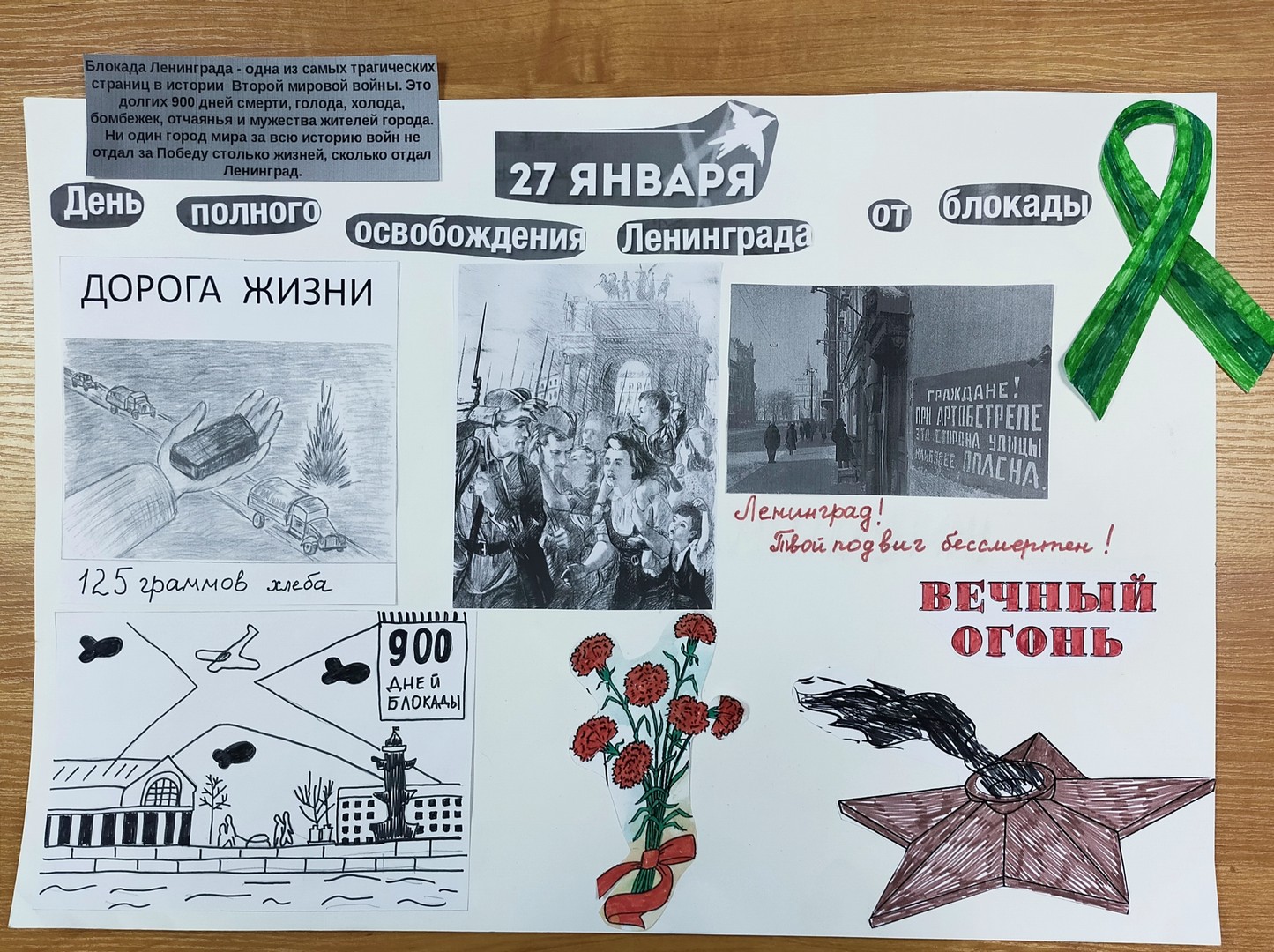 25-27 января в школьной библиотеке был проведен цикл мероприятий «900 дней мужества и отваги» к 77-летию полного освобождения Ленинграда от фашистской блокады в рамках гражданско-патриотического воспитания учащихся.