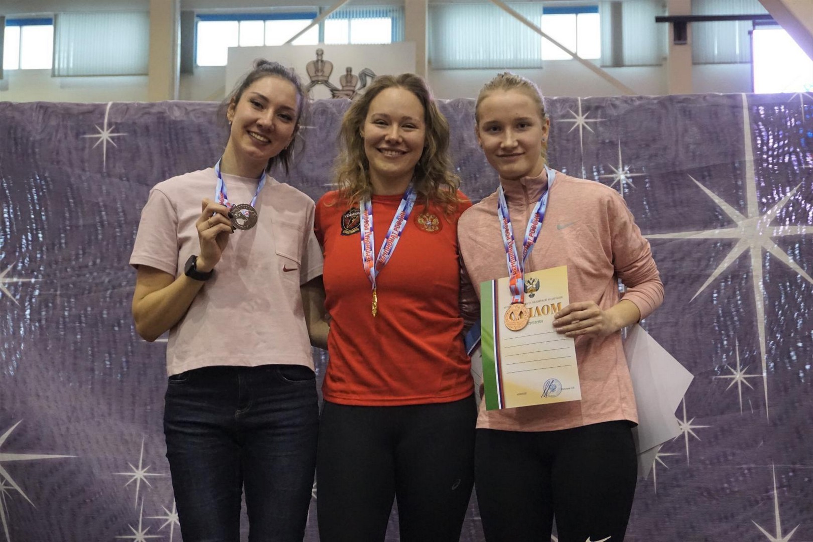 I – в толкании ядра; II – в беге на 60 метров, в прыжках в длину; III – в беге на 300 метров.