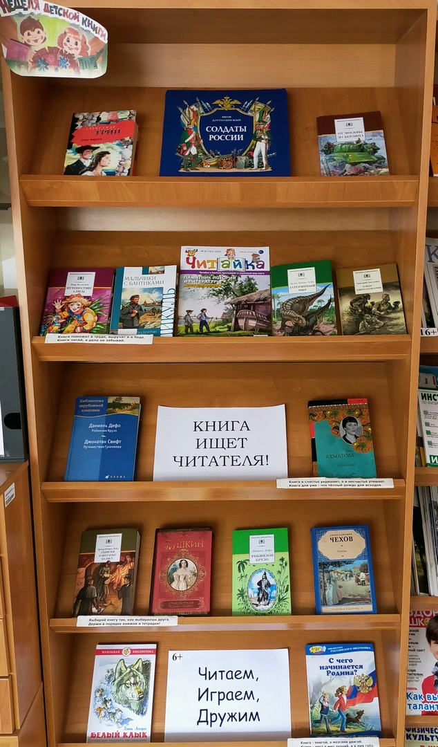 Учащиеся побывали на книжной выставке «Книга ищет читателя!»: прослушали обзор и выбрали книги для прочтения на каникулах. Они поучаствовали в мастер-классе: выполнили творческое задание, создав плакат «Книги – наши друзья»; ответили на вопросы литературной викторины «По страницам любимых книг», закрепив пройденный материал по художественным произведениям. Зав. библиотекой Антонова А.А.