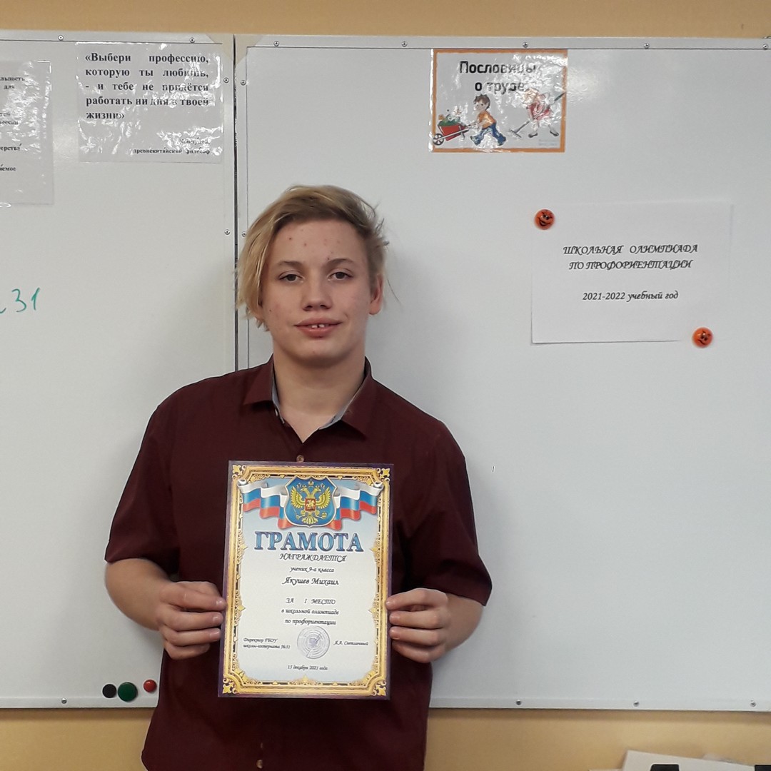 Подведены итоги проведенной 15 декабря 2021 года  школьной олимпиады по профориентации среди обучающихся 8-х и 9-х классов.  Победителями стали: