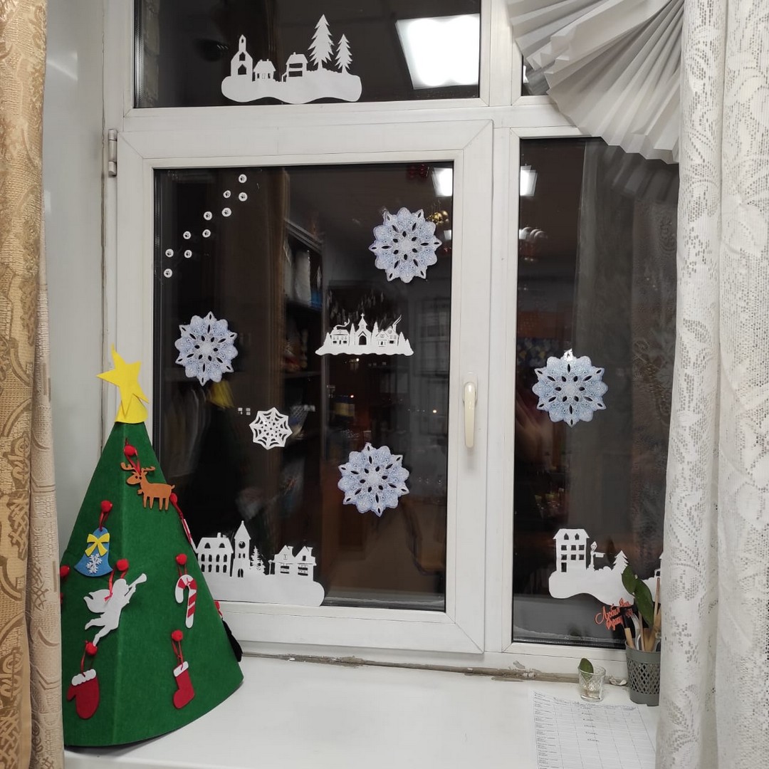 В преддверии праздника в школе было создано новогоднее настроение. На окнах появились сказочные узоры, классы превратились в сказку.