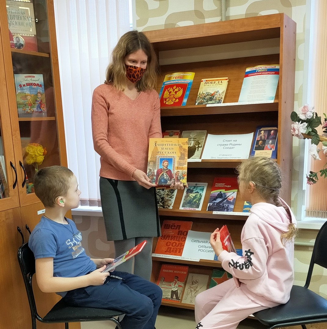 Занятие включало в себя: беседу о героизме воинов России, мощи и славе русского оружия на книжной выставке «Сильная Армия – сильная Россия»; онлайн-обзор литературных произведений от детской библиотеки № 8 Невского района Санкт-Петербурга «Герои Великой Отечественной Войны»; интерактивную игру-викторину «Военные профессии». Зав. библиотекой Антонова А.А.
