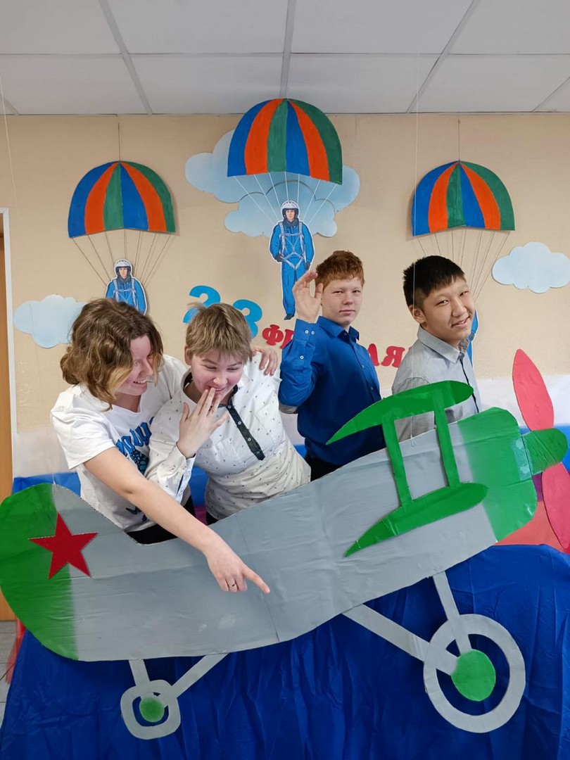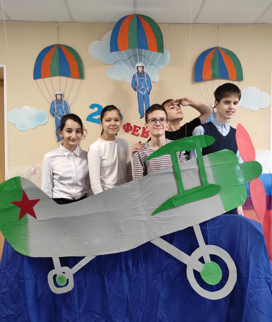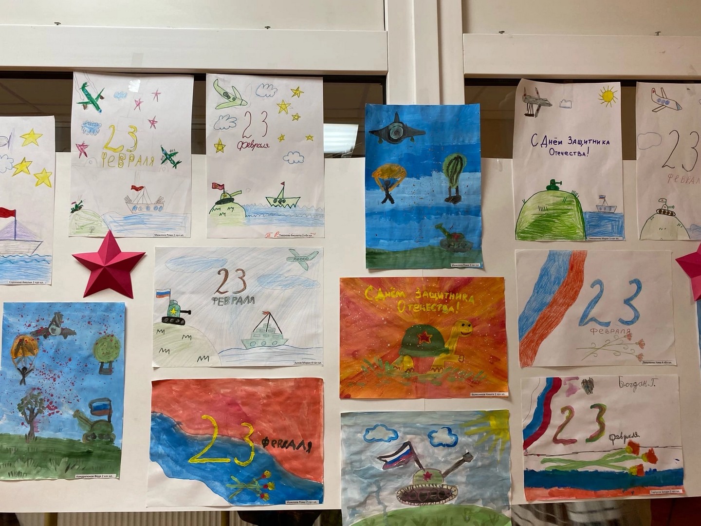 В рамках празднования Дня защитника Отечества а школе проходил флешмоб «Равняйся. Смирно», были подготовлены праздничные поздравительные плакаты, организованы тематические фотозоны на этажах. Также был подготовлен онлайн концерт.