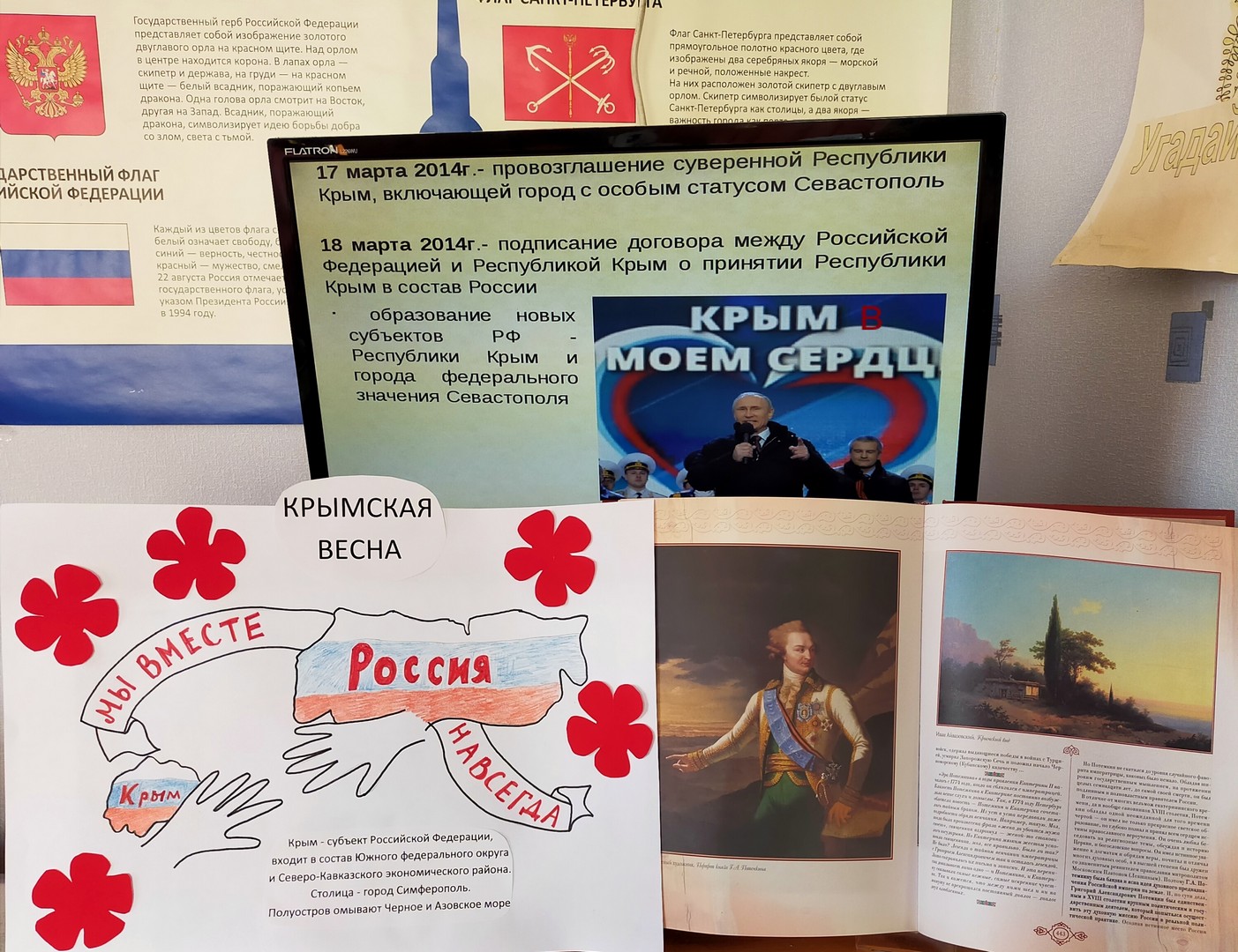Обучающиеся поучаствовали в беседе, посвященной восьмой годовщине воссоединения Крыма с Россией и на мастер-классе выполнили творческое задание, создав плакат «Крымская весна».