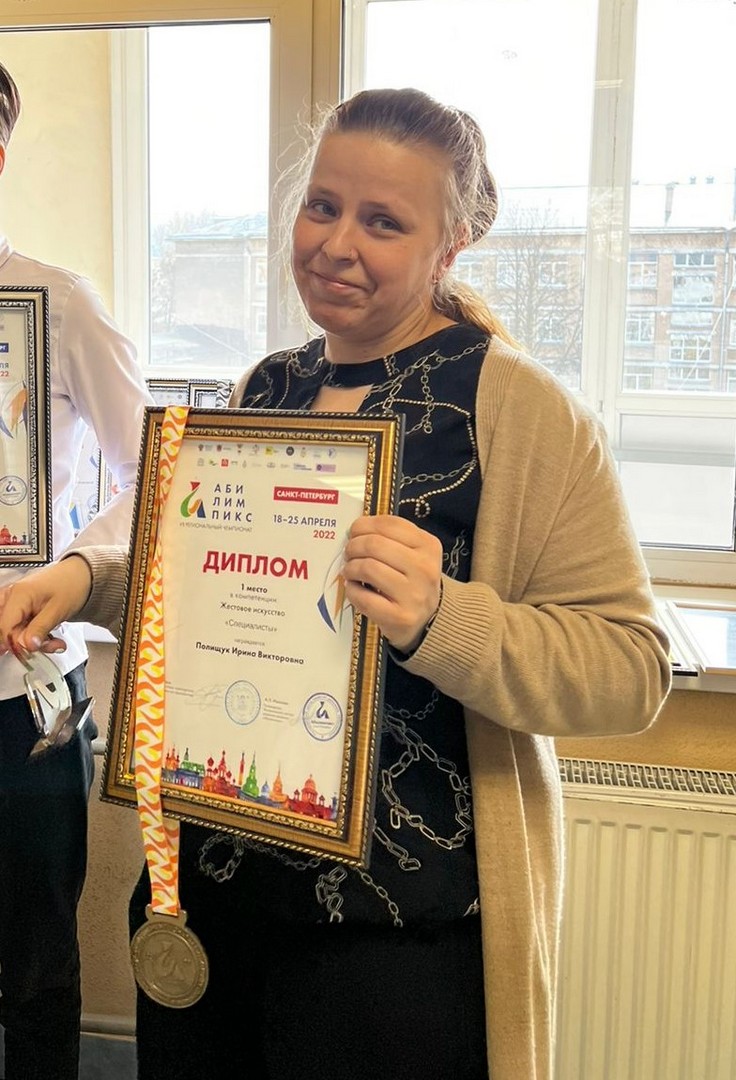 Также победителем, занявшим 1-е место в номинации «Жестовое искусство» в категории «специалист» стала наша педагог-организатор Полищук Ирина Викторовна.