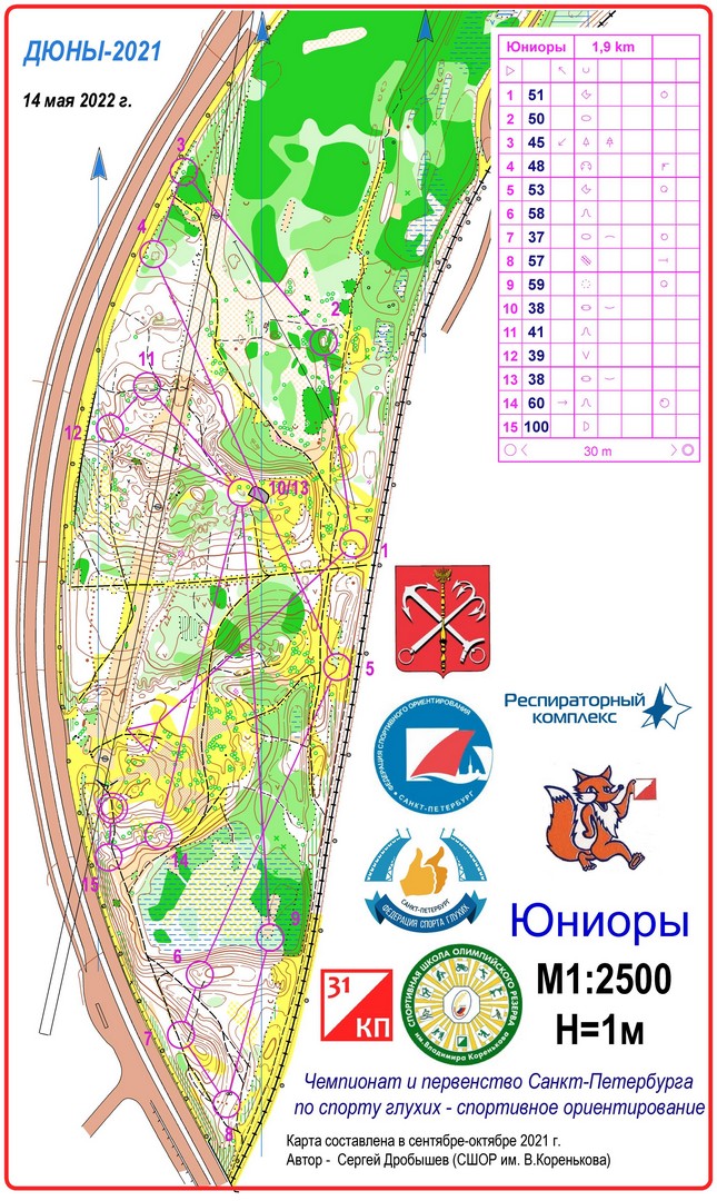 Специально для этого соревнования Заслуженным тренером России Сергеем Дробышевым (инвалидом по слуху) была подготовленная новая карта лесного массива за музеем «Сестрорецкий рубеж».