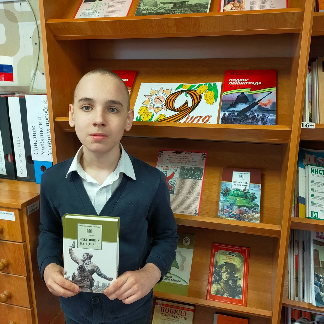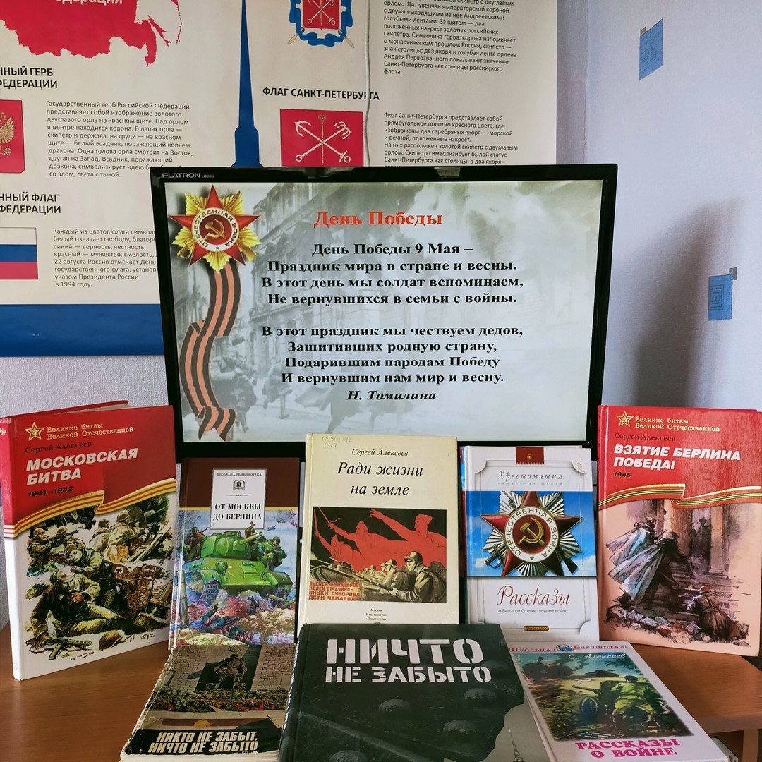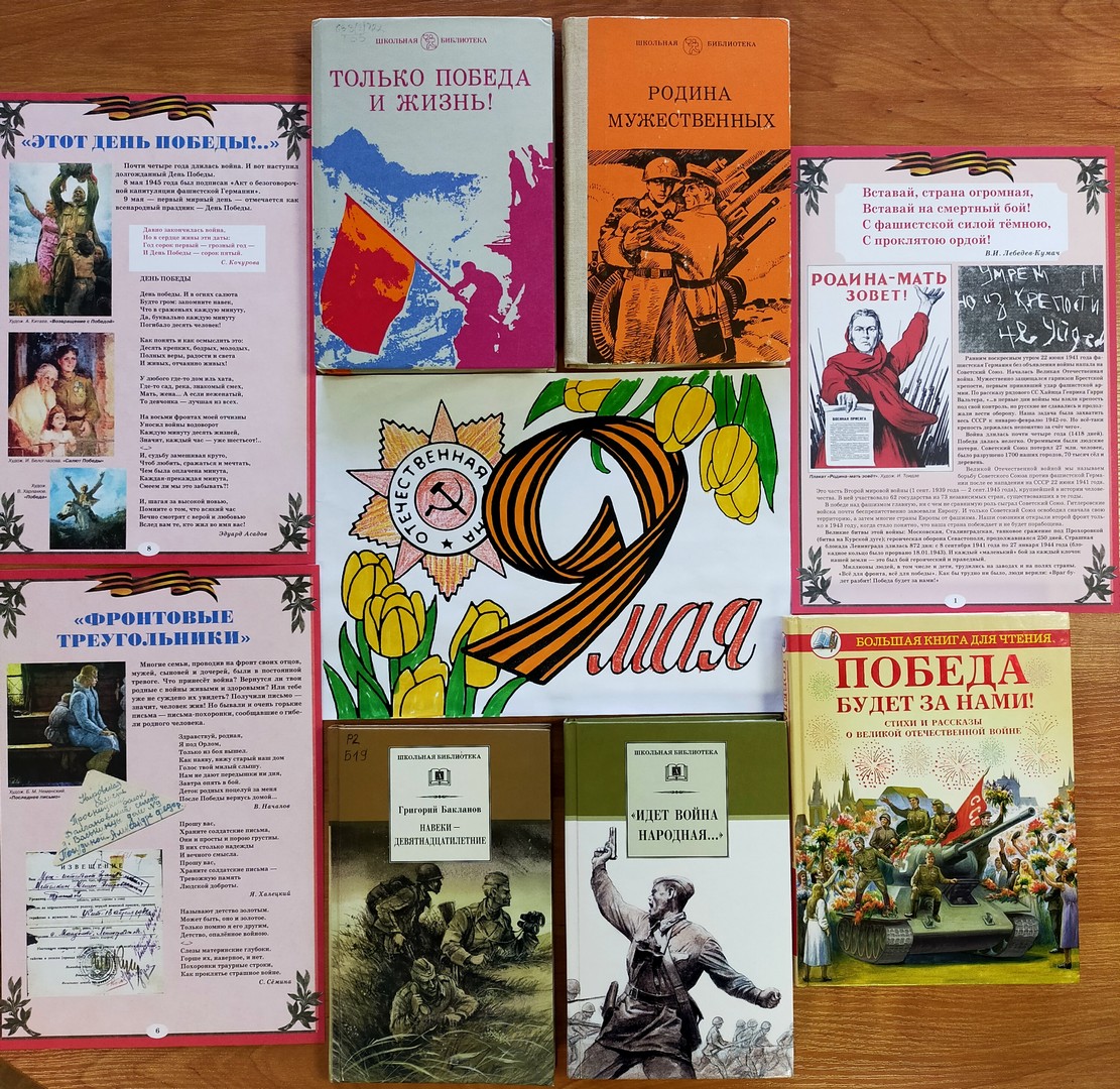 В школьной библиотеке для учащихся ко Дню Победы был проведен обзор «Великий подвиг великого народа».