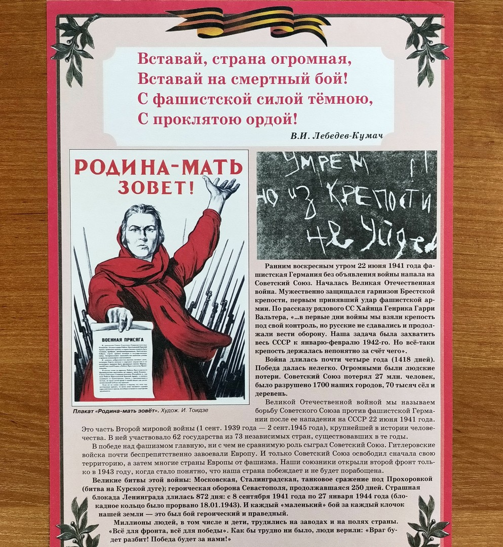 Цель: сформировать знания о Великой Отечественной войне, о мужестве советского солдата на её фронтах, о неоценимом вкладе России в освобождение Европы от фашизма.