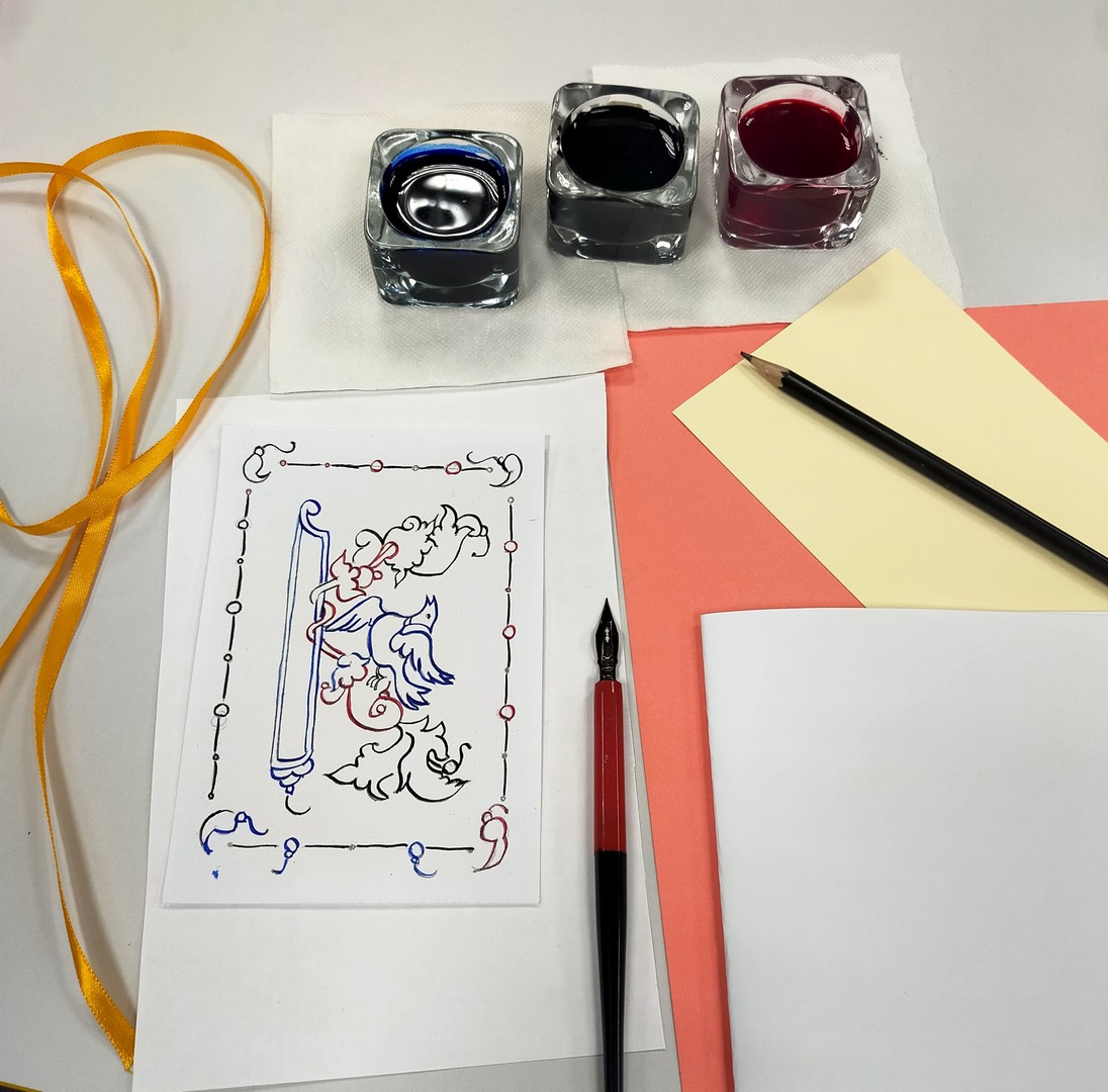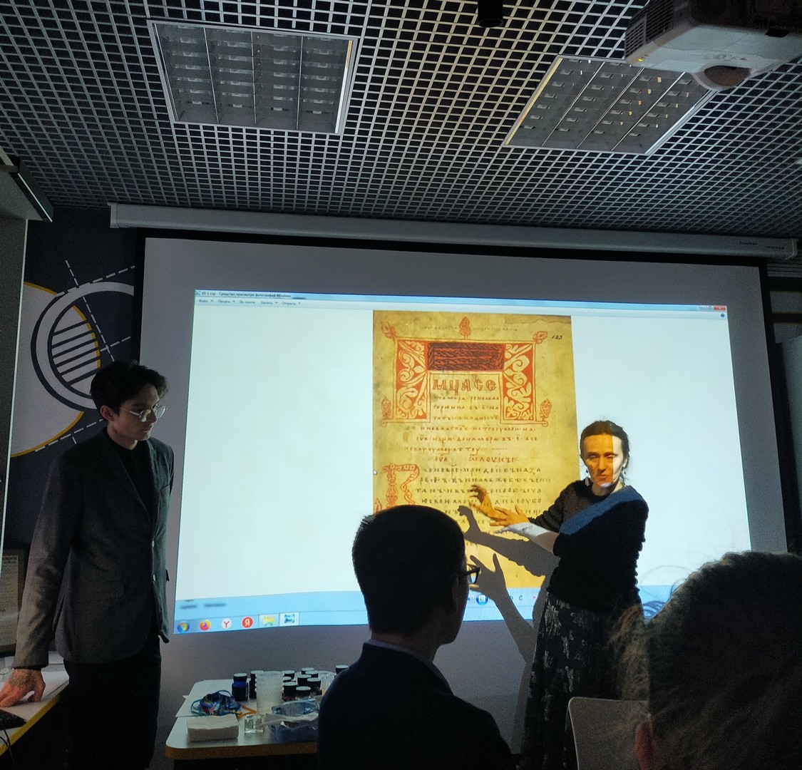 Обучающиеся узнали занимательные факты из истории письма: Вязь издавна любима на Руси. Ею украшают книги, предметы быта, архитектуру. А работу вязью выполняют ширококонечным пером.
