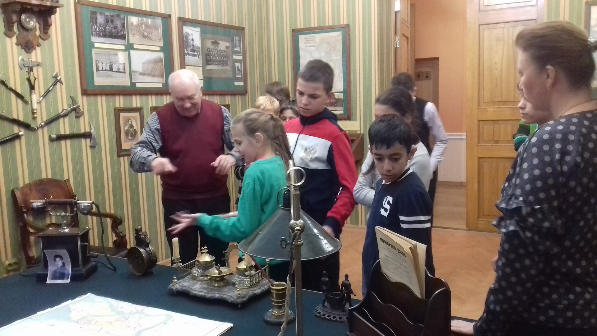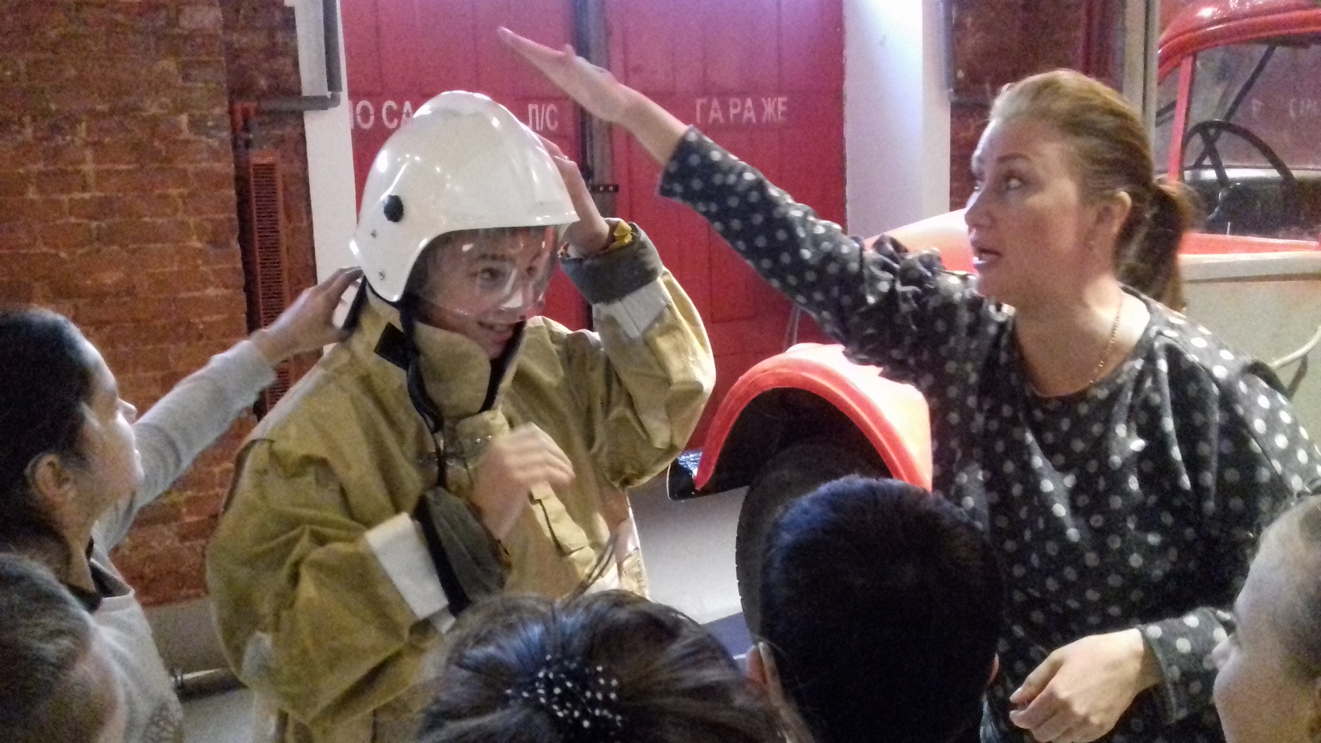 Мы увидели первых пожарных Петербурга, пожарные насосы, конную пожарную команду, красивую форму пожарных. Узнали, почему пожарные были обязательно с бородой и многое другое. Попробовали одеть современную пожарную одежду и посидеть на настоящей пожарной машине