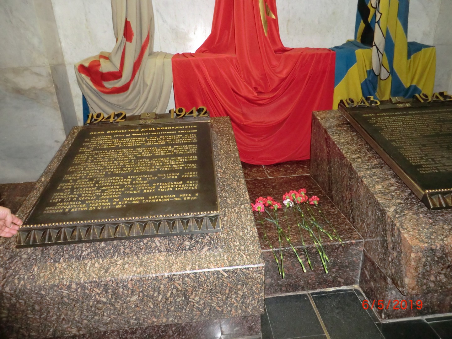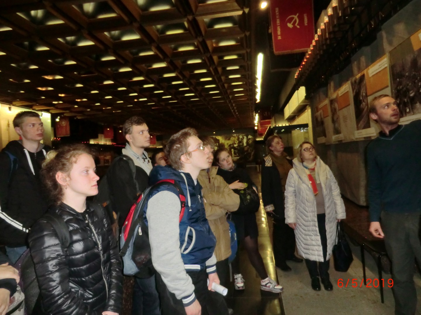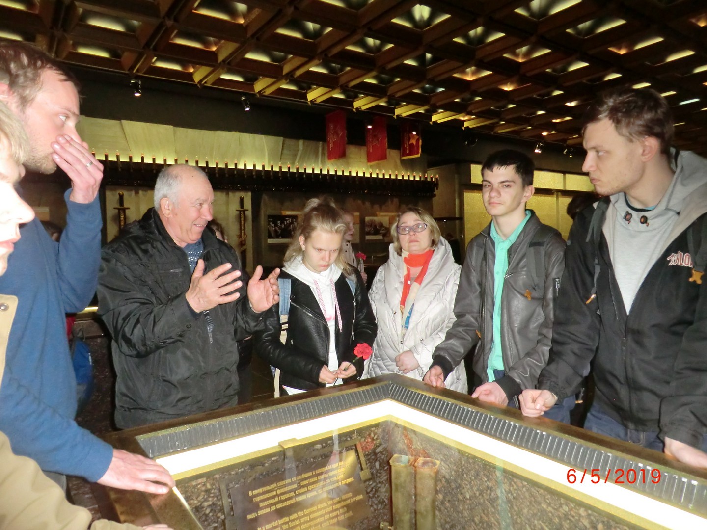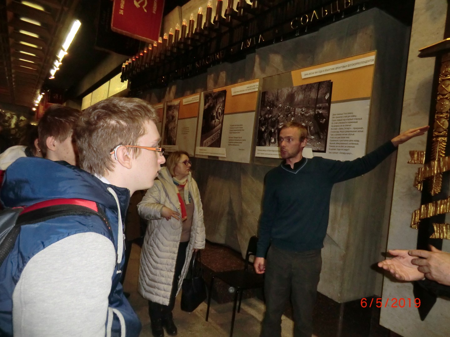 Далее экскурсия продолжалась под землей в Памятном зале. Особое внимание было обращено на большие мозаики «Блокада» и «Победа», на книги Памяти с металлическими ежедневными страницами с 1941 по 1944 годы. В конце экскурсии был показан документальный фильм о жизни ленинградцев в годы блокады.