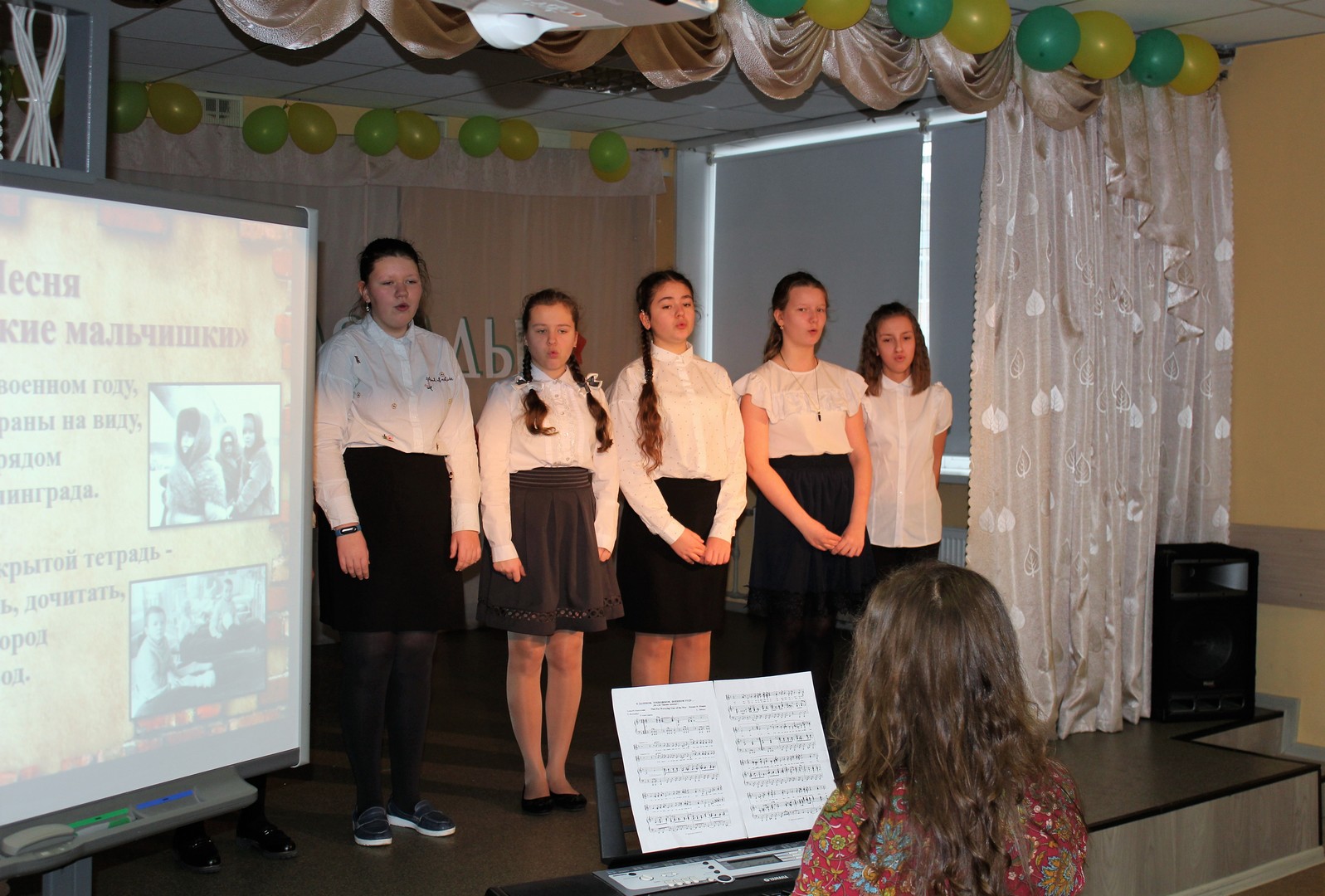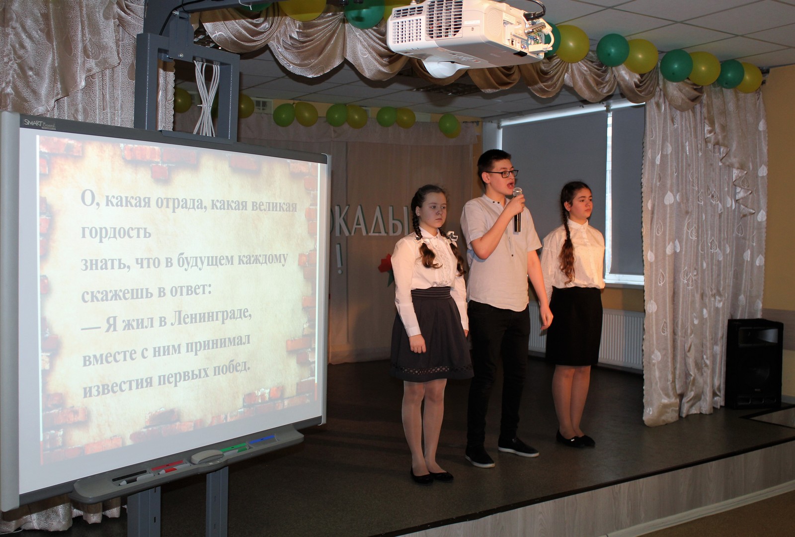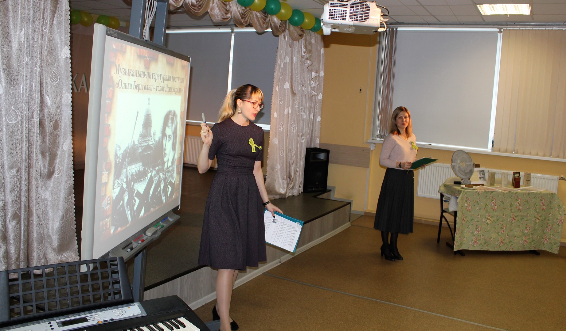 28.01.2020 года в нашей школе для 5-7 классов была проведена музыкально-литературная гостиная «Ольга Берггольц – голос Ленинграда» посвященная 110 летнему юбилею О.Ф. Берггольц и снятию блокады Ленинграда. На мероприятии ребята вспомнили самые главные события блокады Ленинграда, познакомились с творчеством Ольги Фёдоровны того времени. Послушали и сами прочитали блокадные стихотворения советской поэтессы.