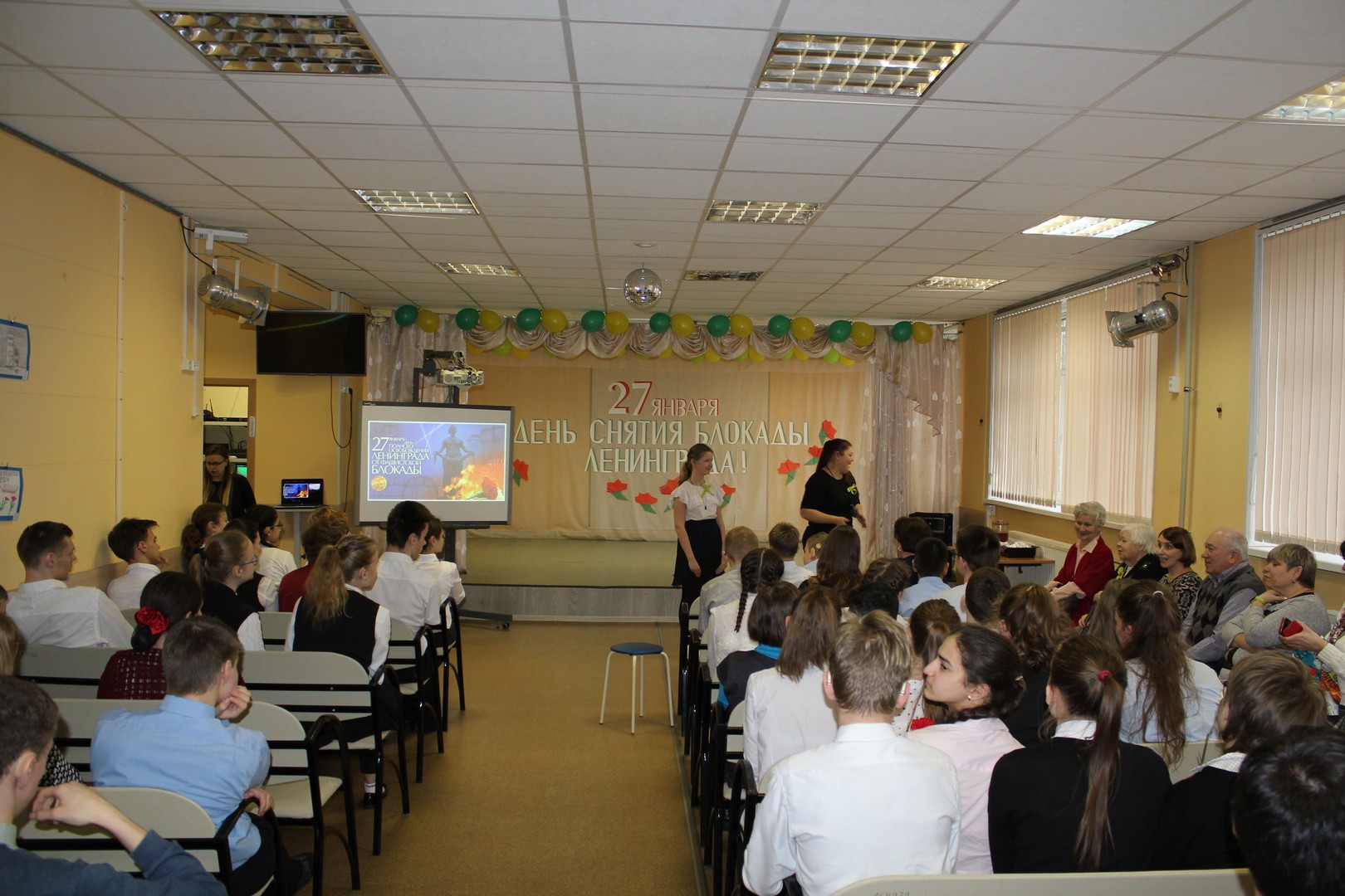 В понедельник было проведено мероприятие посвященное Дню снятия блокады Ленинграда. Обучающиеся старших классов встретились с ветеранами - детьми блокадниками, которые рассказали о тяжелых днях.  Послушали рассказ о блокадном хлебе. Учителями был приготовлен хлеб по блокадному рецепту и чай из коры дуба. Обучающимися были исполнены патриотические песни.