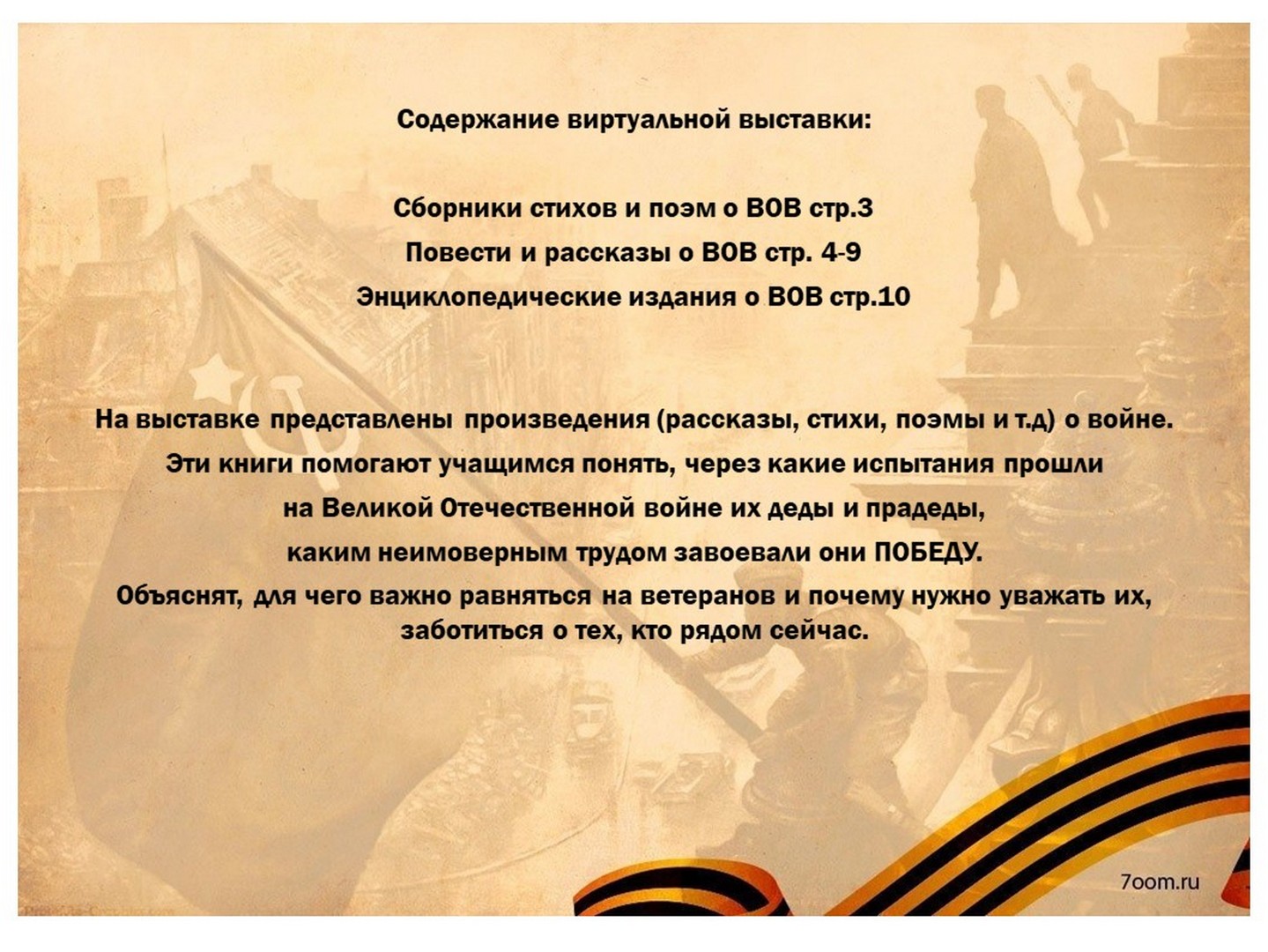 Виртуальная выставка книг из фонда библиотеки ГБОУ №31 Невского района, посвящённая 76-летию Великой Победы "Память сильнее времени"