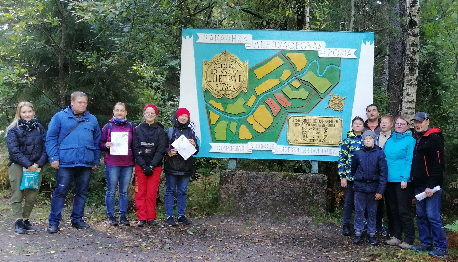 В Линдуловской роще много уникальных объектов и памятников. Один из них был особенно интересен юным спортсменам: памятный камень на месте первых в России соревнований по ориентированию. Погода была солнечная и ребята пробежались по исторической дистанции в районе слияния рек Гладышевка и Рощинка.