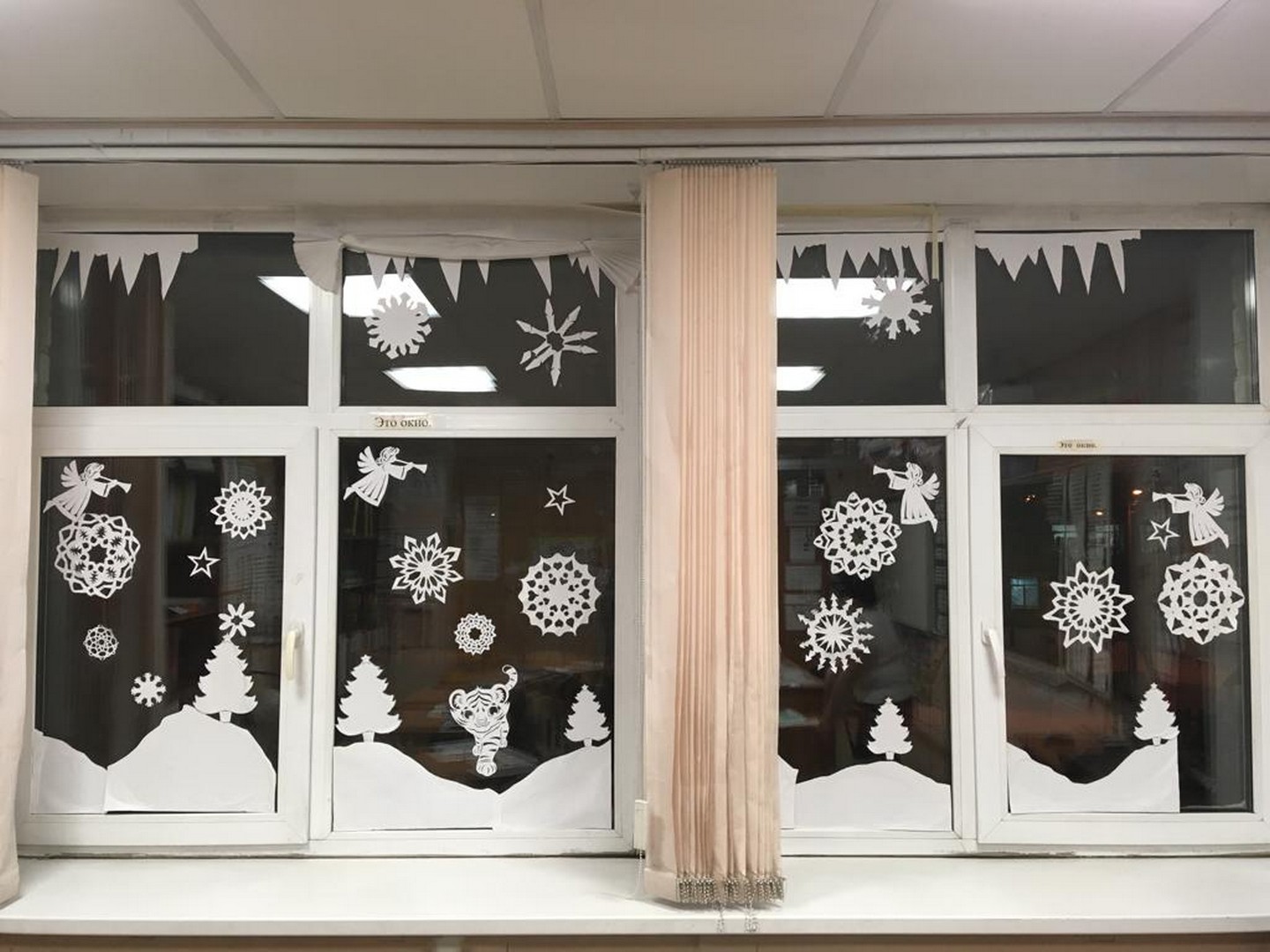 В преддверии праздника в школе было создано новогоднее настроение. На окнах появились сказочные узоры, классы превратились в сказку.