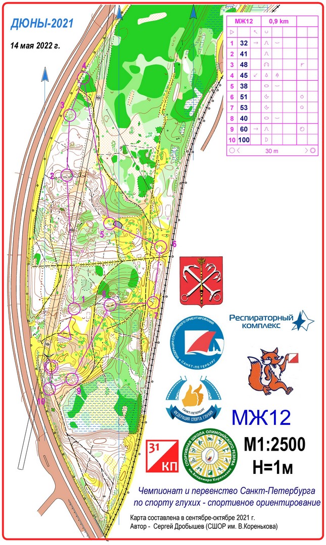 Специально для этого соревнования Заслуженным тренером России Сергеем Дробышевым (инвалидом по слуху) была подготовленная новая карта лесного массива за музеем «Сестрорецкий рубеж».